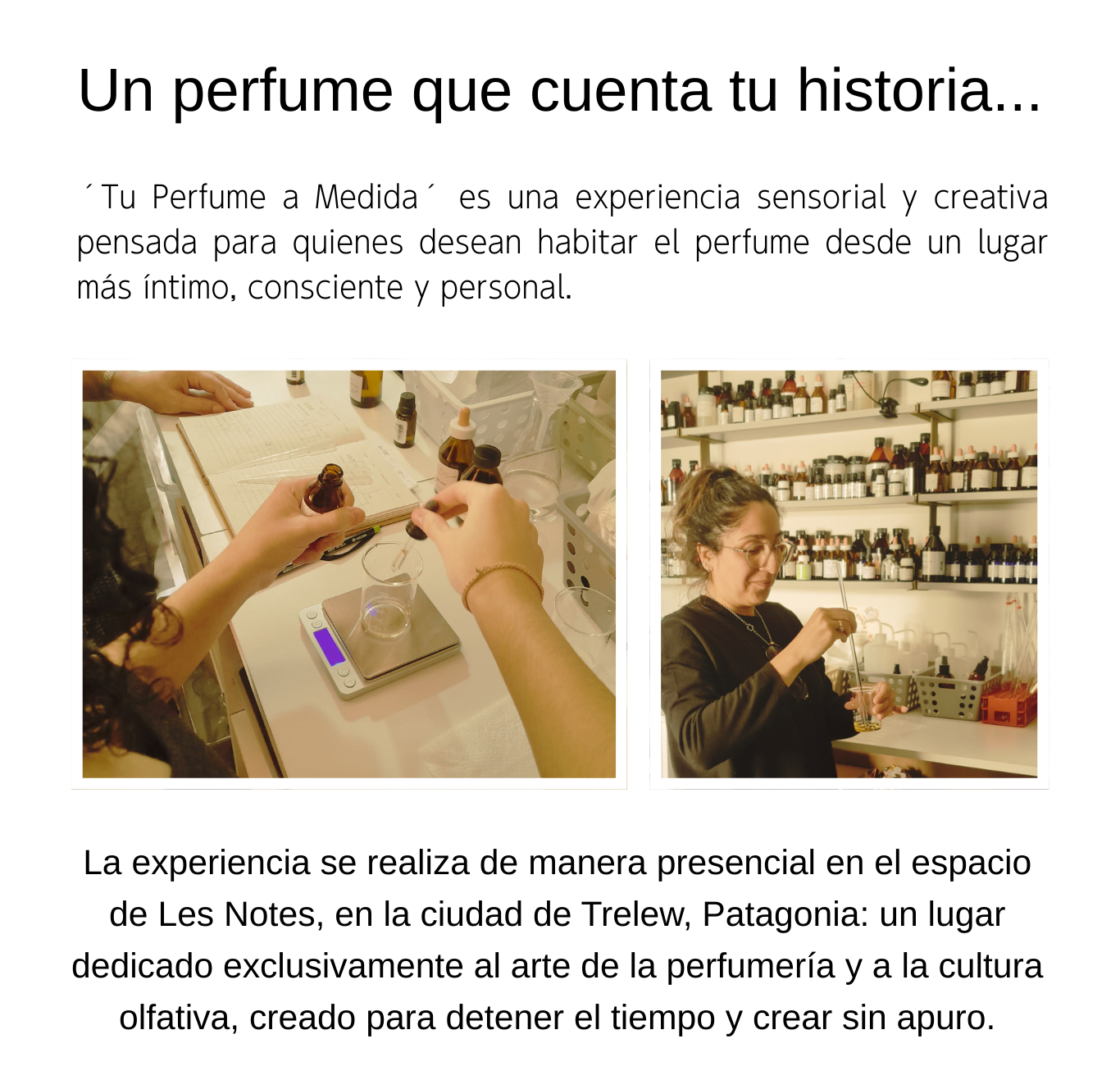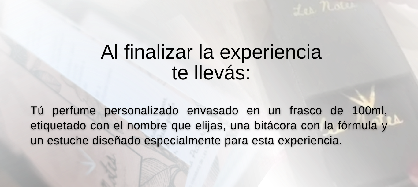 En esta experiencia lo vas vivir creando tu propio perfume con la guía de Valeria, perfumista de Les Notes.